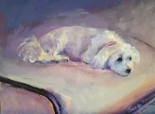 Click Picture to Enlarge Description My late brother in law and his wife adopted two Maltese Terriers. These were the most loving dogs, they were always in someones lap or sharing a chair. In this case it was a chaise lounge on their patio in Goodyear Arizona. Medium Oil Type Animal