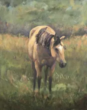 Click Picture to Enlarge Description This beautiful buckskin horse is from a pasture near Kearney Nebraska. Buckskins are beautiful! He was fun to paint. Medium Oil Type Animal Size 30X24